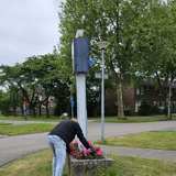 De Bewonerscommissie Woldwijck-Midden heeft ook dit jaar weer gezorgd voor fleurige bloemen onder de klok. Een jaarlijkse traditie die de buurt opvrolijkt!